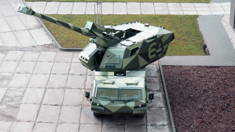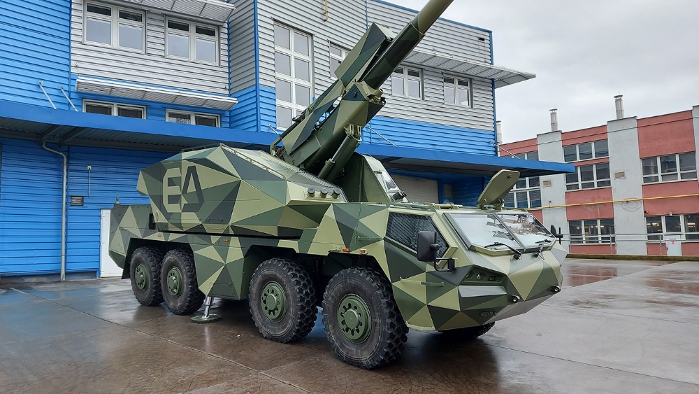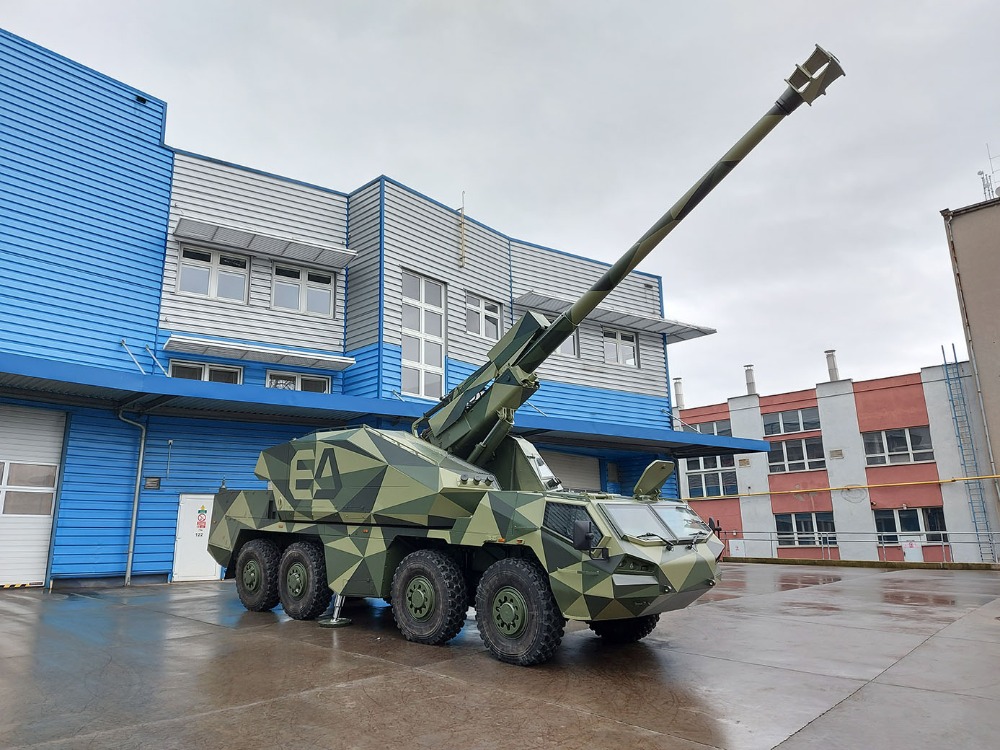 155 mm samohybná kanónová houfnice DITA. Světová premiéra 21. února 2021 v rámci veletrhu IDEX 2021 v Abú Dhabí.