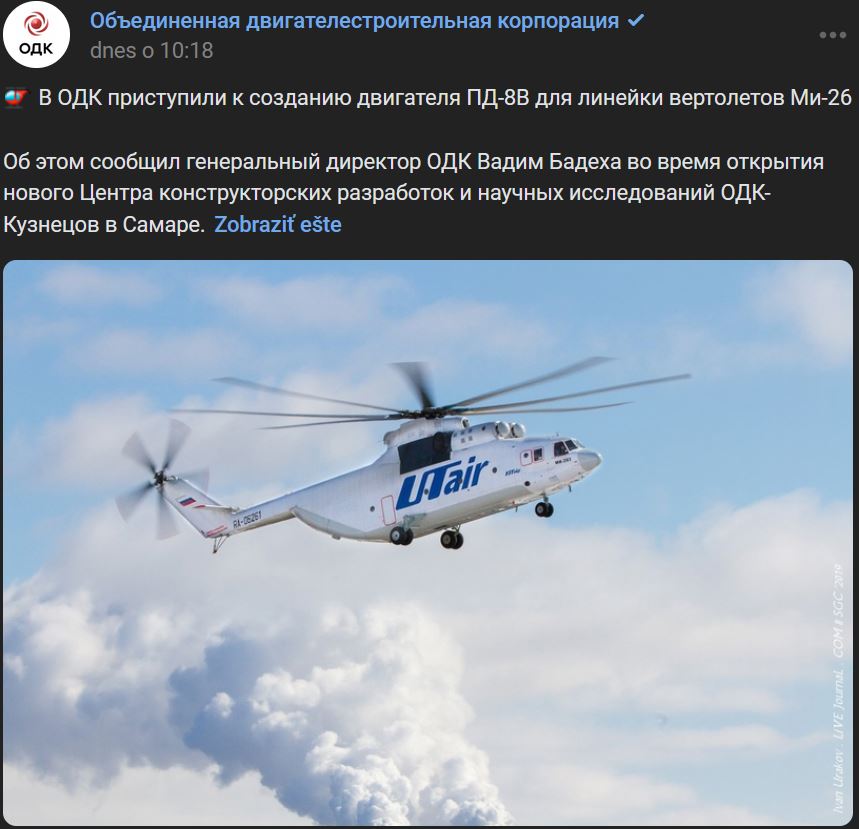 http://www.securitymagazin.cz/defence/r ... 57869.htmlRussian Helicopters, ruský holding specializující se na výrobu a modernizaci vrtulníků, který má zároveň pod sebou sjednocuje všechny ruské výrobce vrtulníků, chystá modernizaci stávajícího ruského transportního vrtulníku Mil Mi-26. Rozhodl se rovněž pracovat na prototypu nového vrtulníku Mi-26T2V. Informovala o tom agentura TASS s odvoláním na tiskovou zprávu Russian Helicopters z minulého týdne.