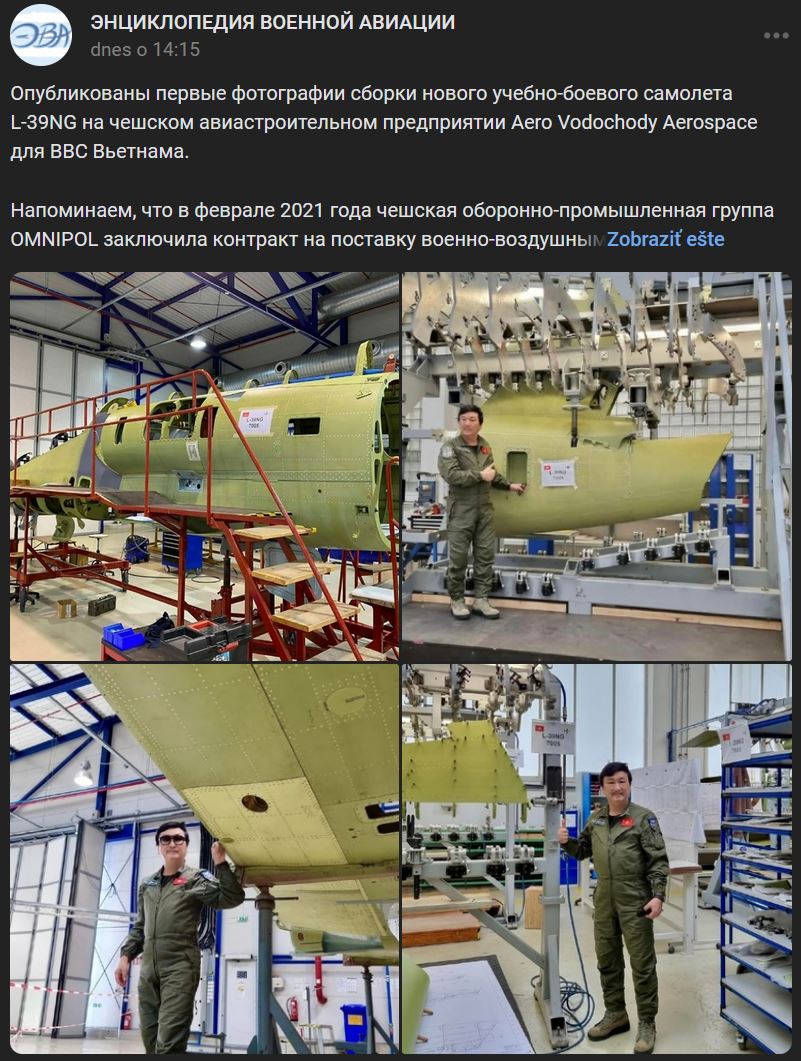 Boli zverejnené prvé fotografie z montáže nového cvičného lietadla L-39NG v českej leteckej spoločnosti Aero Vodochody Aerospace pre VVS Vietnamu. Radi by sme pripomenuli, že v 02/2021 podpísala česká skupina obranného priemyslu OMNIPOL zmluvu na dodávku 12 nových cvičných lietadiel L-39NG vyrábaných spoločnosťou Aero Vodochody Aerospace pre vzdušné sily Vietnamskej socialistickej republiky. Parametre zmluvy neboli zverejnené, ale uvádza sa, že lietadlá majú byť dodané do Vietnamu v rokoch 2023-2024.