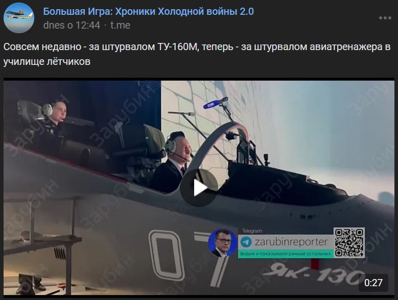 V.V. Putin na návšteve leteckej školy kde sa pripravujú prvé pilotky, viď https://t.me/zarubinreporter/2188 na letový simulátor lietadla Diamond DA42 Twin Star, resp. https://rutube.ru/video/4b0e1feb260b42a ... 7da0ed005/ + https://rutube.ru/video/9e1205f08a359ae ... 69db28c8a/ +