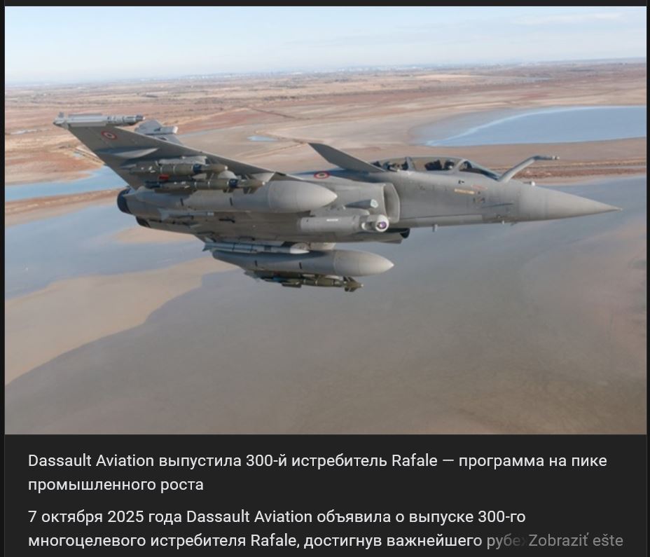 Utorok 07.10.2025 spoločnosť Dassault Aviation oznámila výrobu 300. viacúčelového lietadla rodiny Rafale, čím dosiahla dôležitý míľnik pre kľúčovú bojovú platformu Francúzska. To sa zhodovalo s otvorením nového závodu v Sergy, severozápadne od Paríža, ktorý bude podporovať výrobu lietadiel Rafale aj biznis-jetov Falcon.