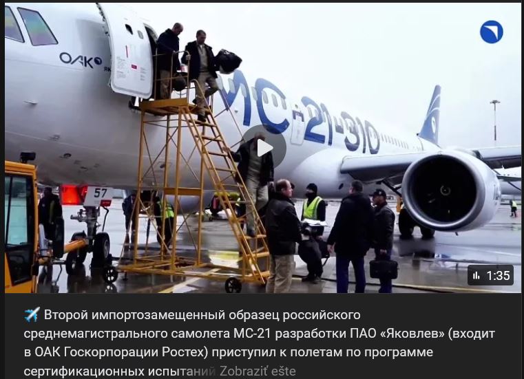 2. domáci / bezimportný Jakovlev MS-21-310 (МС-21-310) sa pripojil s certifikačným testom