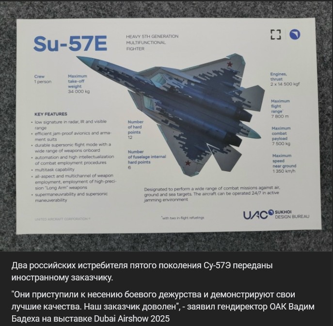 „Oni už začali vykonávať bojovú službu a preukazujú svoje najlepšie vlastnosti. Náš zákazník je spokojný,“ vyhlásil generálny riaditeľ OAK Vadim Badecha (Вадим Бадеха) na výstave Dubai Airshow 2025.