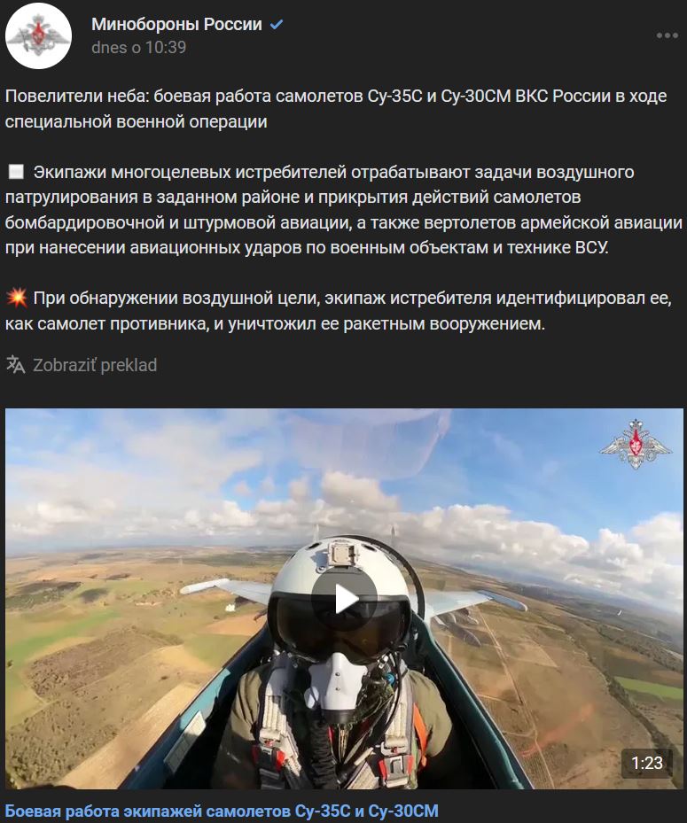 Vládcovia oblohy: bojová činnosť lietadiel Suchoj Su-35S (Су-35С) a Su-30SM (Су-30СМ) VKS Ruska v špeciálnej vojenskej operácii.