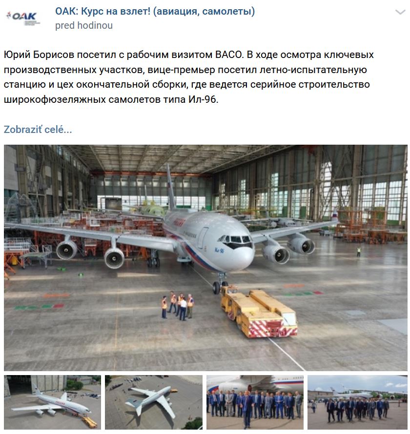 Voronež, VASO (Воронежское акционерное самолетостроительное общество (ВАСО)) dokončilo práce na lietadle Iľjušin Il-96-300 (Ил-96-300), jeho prvý vzlet prebehol pred 2 mesiacmi, v rôznom štádiu výroby sú ešte ďalšie 3 ks + ešte jedno lietadlo Il-96-400M (Ил-96-400М). Podľa TASS bude VASO vo Voroneži podľa terajších objednávok vyrábať lietadlá rodiny Il-96 do roku 2030 (ak sa objednávky nenavýšia).