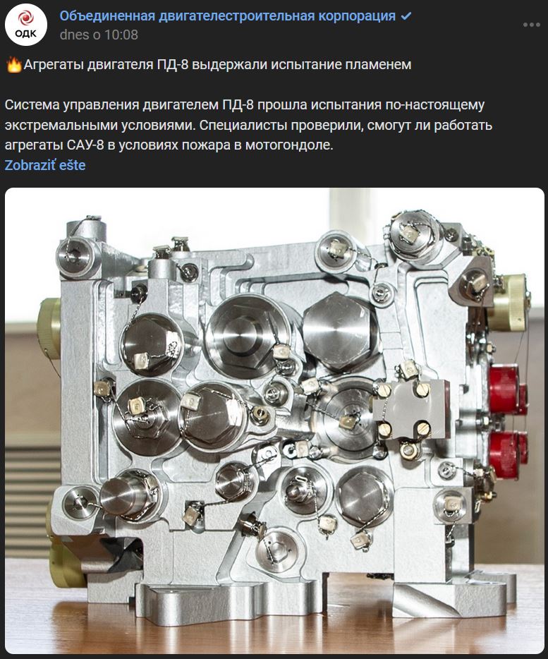 Agregáty motora PD-8 vydržali testy "ohňom"