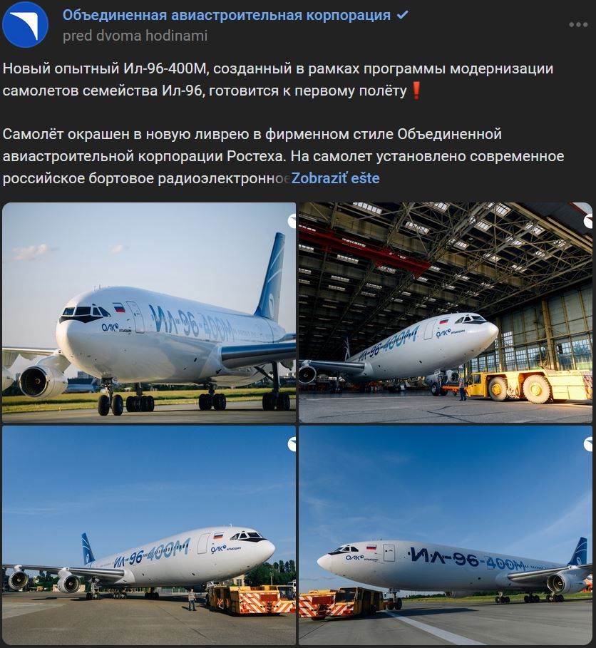 Nový prototyp IL-96-400M (Ил-96-400М), vytvorený v rámci programu modernizácie rodiny IL-96, sa pripravuje na svoj prvý let. Lietadlo je nastriekané v novom livreji v korporátnom štýle spoločnosti AOK Rostech. Lietadlo je vybavené najmodernejšou ruskou avionikou vrátane nového avionického kompletu a ďalších systémov a komponentov. Vďaka predĺženému trupu je lietadlo priestrannejšie a atraktívnejšie pre prevádzkovateľov.