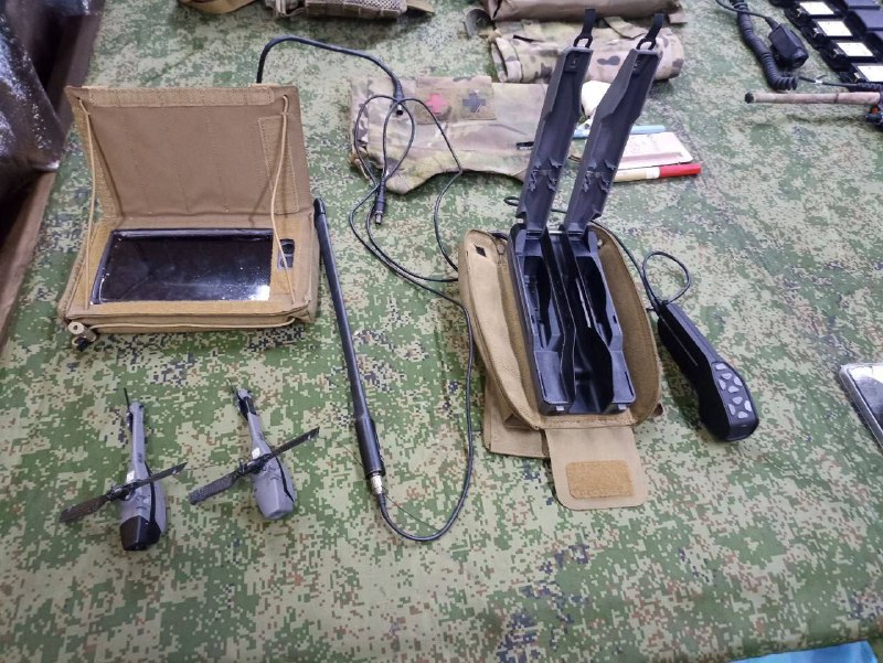trofej: Systém riadenia a dve prieskumné bezpilotné lietadlá Black Hornet Nano VSU v Novej Tavolžanke v Belgorodskej oblasti. Tieto minidrony boli ukoristené v boji.