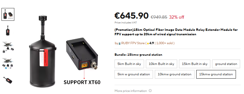 Takže ak by ste potrebovali z nejakého neznámeho dôvodu, nezarušiteľný dron ovládaný po optickom vlákne, s dosahom 15km, tak prosím. Aliexpres poslúži a dodá.