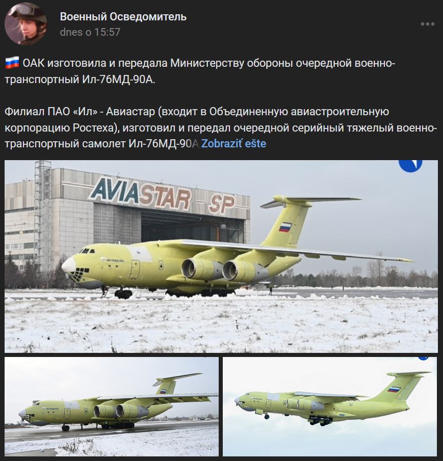 Prehľad výroby lietadiel rodiny Il-76 https://russianplanes.net/planelist/Ilu ... 76/78/A-50 (podľa zákonov v RF sa teraz zobrazujú čísla iba pre civilné spoločnosti, a pre MO RF sú "sivé" ale s registračným číslom)