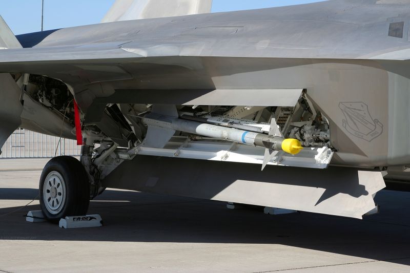 Pre porovnanie - foto už vysunutej AIM-9X na lietadle F-22: