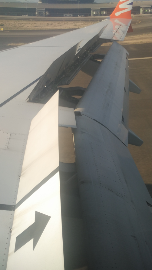 Ešte keby tak ten človek vedel ktorá páčka v kabíne ovláda ktorú časť toho TRANSFORMERS krídla na B737 MAX(foto krídla tesne po pristátí/dotyku)