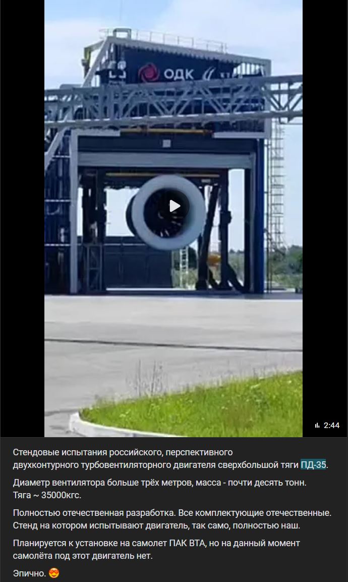 Появилось видео испытаний нового авиадвигателя ПД-35: самолёта под него пока нет