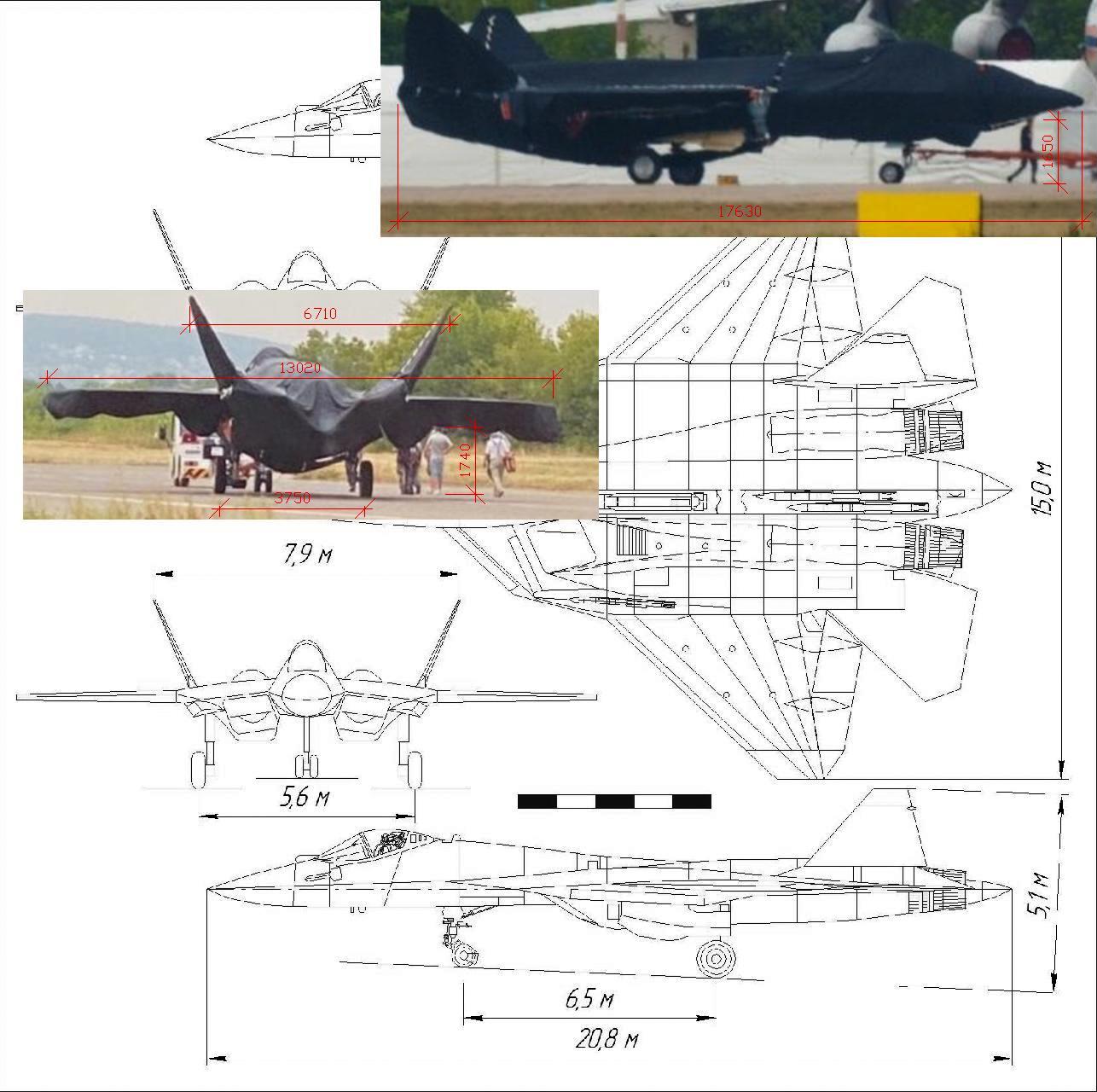 Pokud chcete zjistit od oka cca maximální vzletovou hmotnost pro LTS, aby si zachoval obdobné parametry tahu vůči hmotnosti jako Su-57 (což je docela pravděpodobné zadání a bereme v úvahu, že "aerodynamická čistota" stroje bude cca na obdobné úrovni, protože těžko dosáhnou něčeho zásadně převratného v tomto oboru), 35500kg/2 = 17750kg. Z toho jde lehce inverzně vypočítat i normální vzletovou hmotnost (18000kg/1.2) a ta se pohybuje kolem 15000kg (z toho už jde zas odhadnout i prázdná hmotnost letounu +- docela věrně), normální vzletová hmotnost 15000kg odpovídá článku a zadání pro MiG LMFS s izd.30, co jsem dál o pár příspěvků výše.