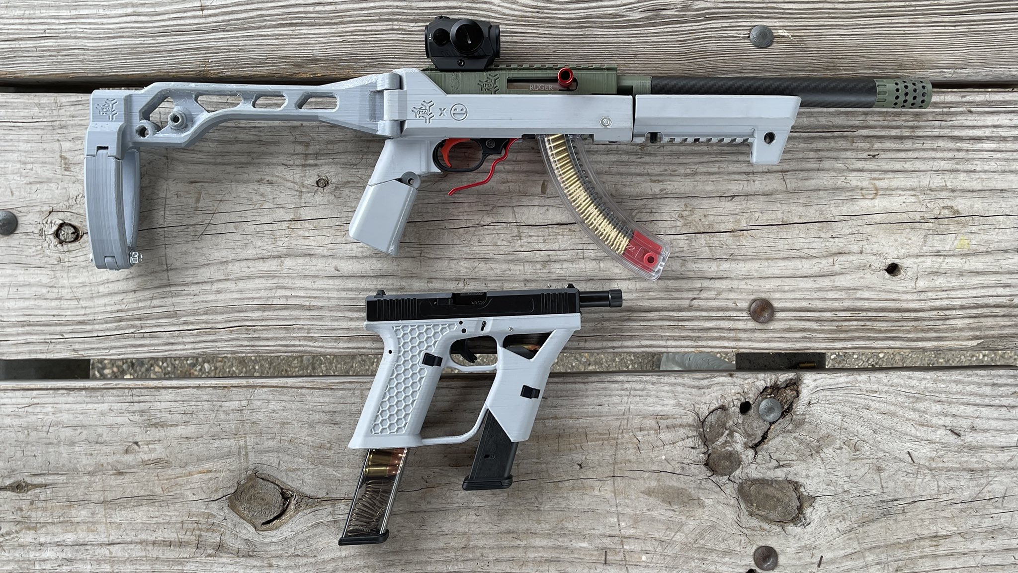 Vývoj se na 3D tisku dělá běžně. Ale nikdo z toho ostrýma nestřílí. Tlumiče a tak se ale tisknou a používají pro kuličkovky a vzduchovky.