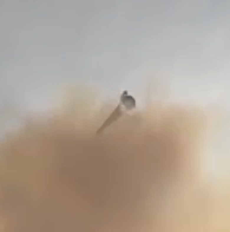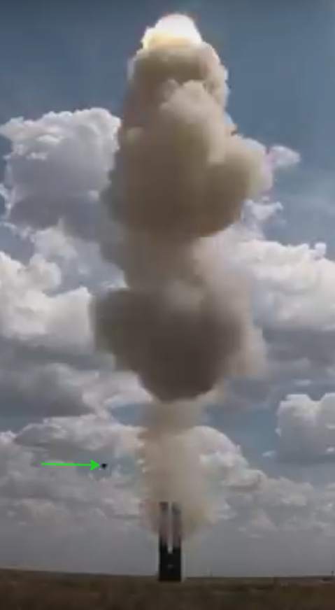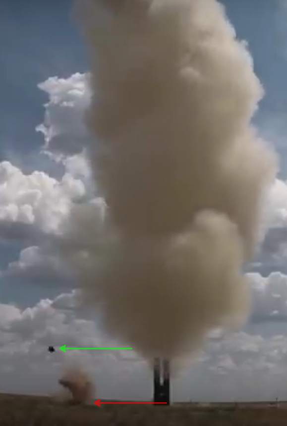 niečo odlieta - je to dosť veľké a dosť odolné, "výbuch" po náraze do zeme, objekt pokračuje až mimo záber