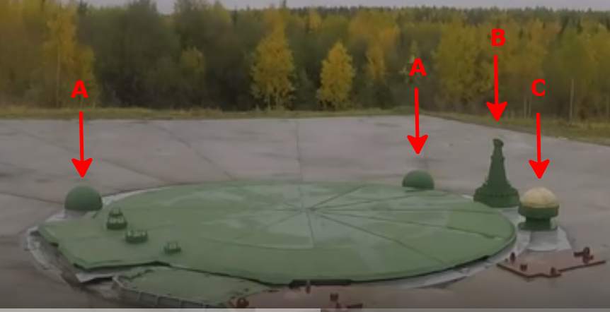 Takže A a C sú snímače detekcie neďalekých výbuchov a B je antena systemu Perimeter. Dik.