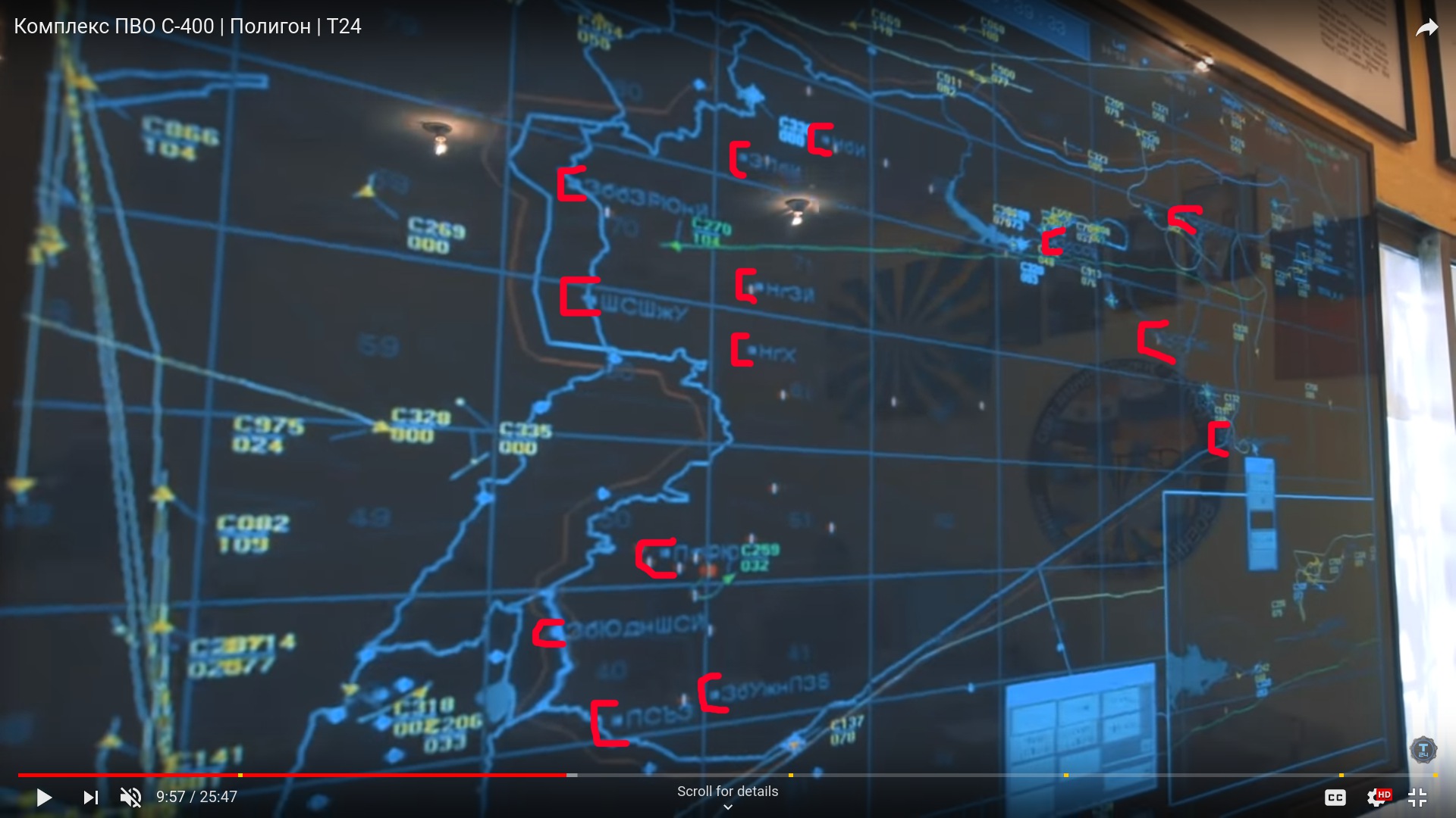 Propojená rusko-syrská PVO síť někdy koncem r.2018, zkoušel jsem ty zkratky rozluštit na internetu, ale nepodařilo se, každopádně to nejsou pozice baterií, ale nejspíš nějaké velitelské vozidla/centra řízení a až pak na ně napíchnuté PVO baterie, protože tam není nic na Hmímimu a ten je plný radarů a PVO komplexů atd, zato je něco u Latákie přímo a u Tartusu. Třeba u těch Galanských výšin se nabízí, že je tam umístěn přehl. radar nebo nějaký radiotechnický průzkum a přes ASU ty data proudí odsud do celé PVO sítě.