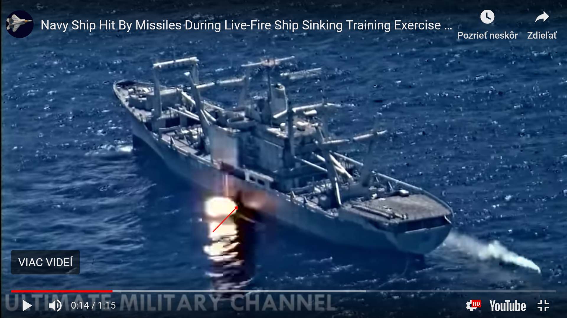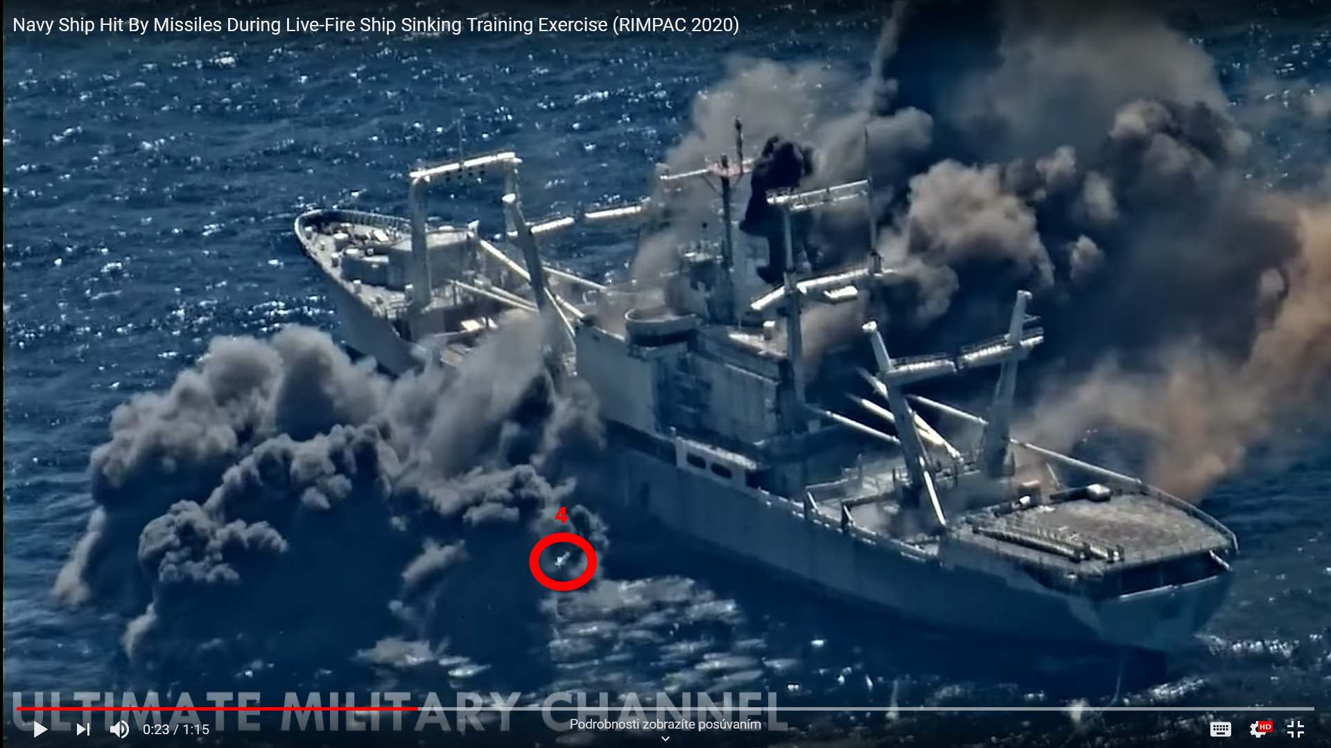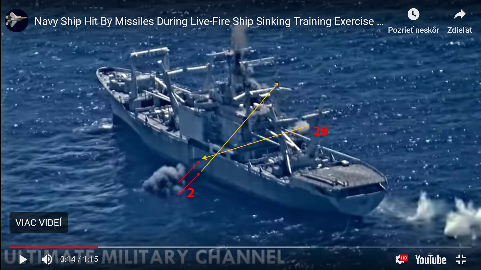 Tak to máš lepší oči. Já si (1) útočící na příď nevšiml. S tou 2 na levoboku je téměř perfektně synchronizovaná. "Viděl" jsem 4 útočící na levobok a v čase 22s jsem myslel, jak se zvedl ten plech na palubě, že to byla další střela na levoboku maskovaná kouřem.