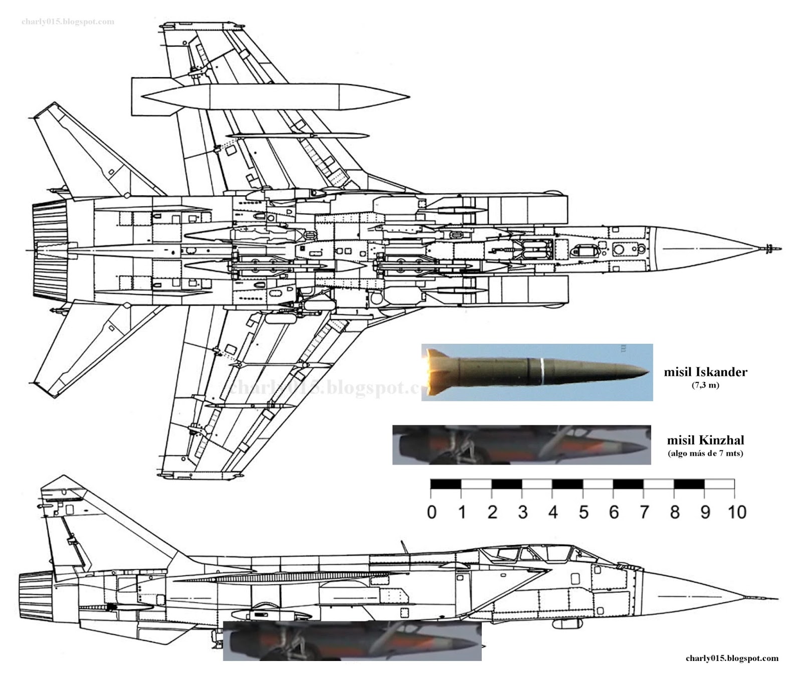 Kindžal má viac ako 3 metre. Na tom videu je dlhý asi tretinu dĺžky Migu-31, ten je dlhý 22,7 metra takže tretina je 7,6 metra.