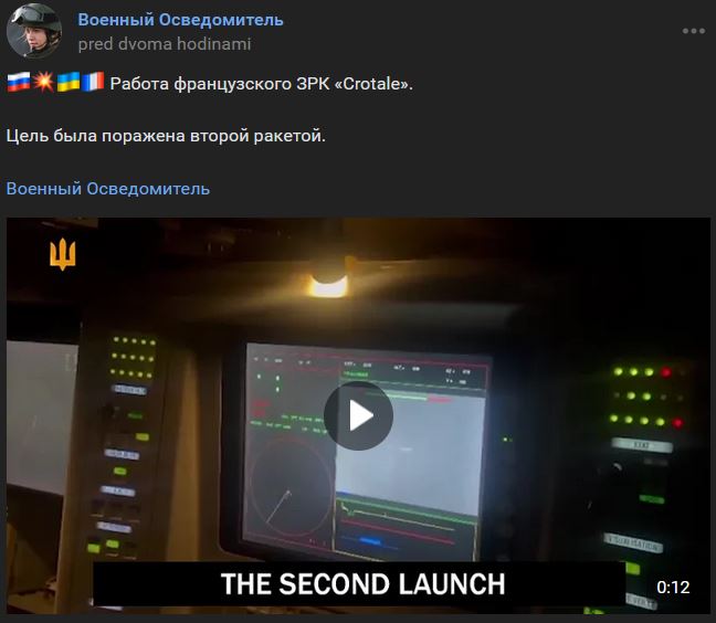 Práca francúzskeho systému protivzdušnej obrany (PVO) Crotale. Cieľ (pravdepodobne BPLA) na UA bol zasiahnutý druhou raketou.