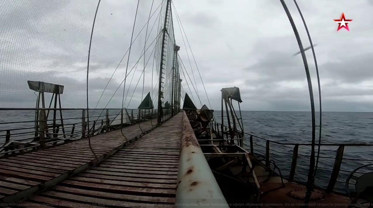 Unikátní záběry hypersonické střely Zirkon, která zasahuje námořní cíl simulující pohybující se loď.