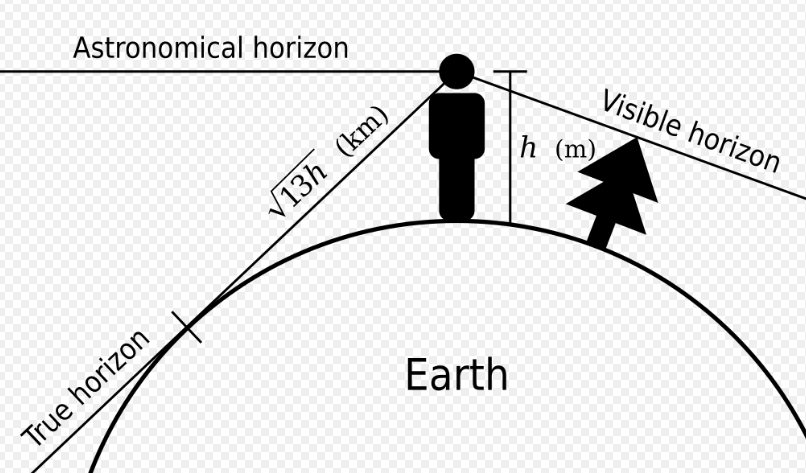 Kapitán na palube plachetnice stojaci v 6m výške nad hladinou by spozoroval špičku hlavného lodného sťažňa vysokého 15m nad hladinou, cca na 22km aby videl na horizonte objavovať sa loď "od špičky sťažňa pretože Zem je guľatá".