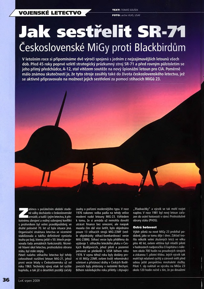 Bača v migu málem sestřelil špionážní SR-71, po revoluci děsil letce NATO