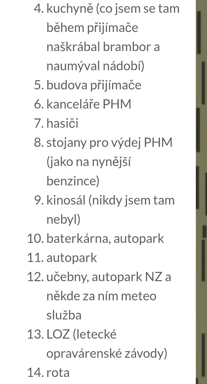 V roku1974 to bol prijímač pre leteckých mechanikov na Mig 21. Tam som získal základy pre neskoršieho "Majstra zbrane"! Žltý krížik pri kinosále 9 - tadiaľ sa behalo na raňajšiu rozcvičku k vrtuľníkom, tam bola legendárna "rokle" na zlepšovanie fyzičky. Najviac chutila v maske!