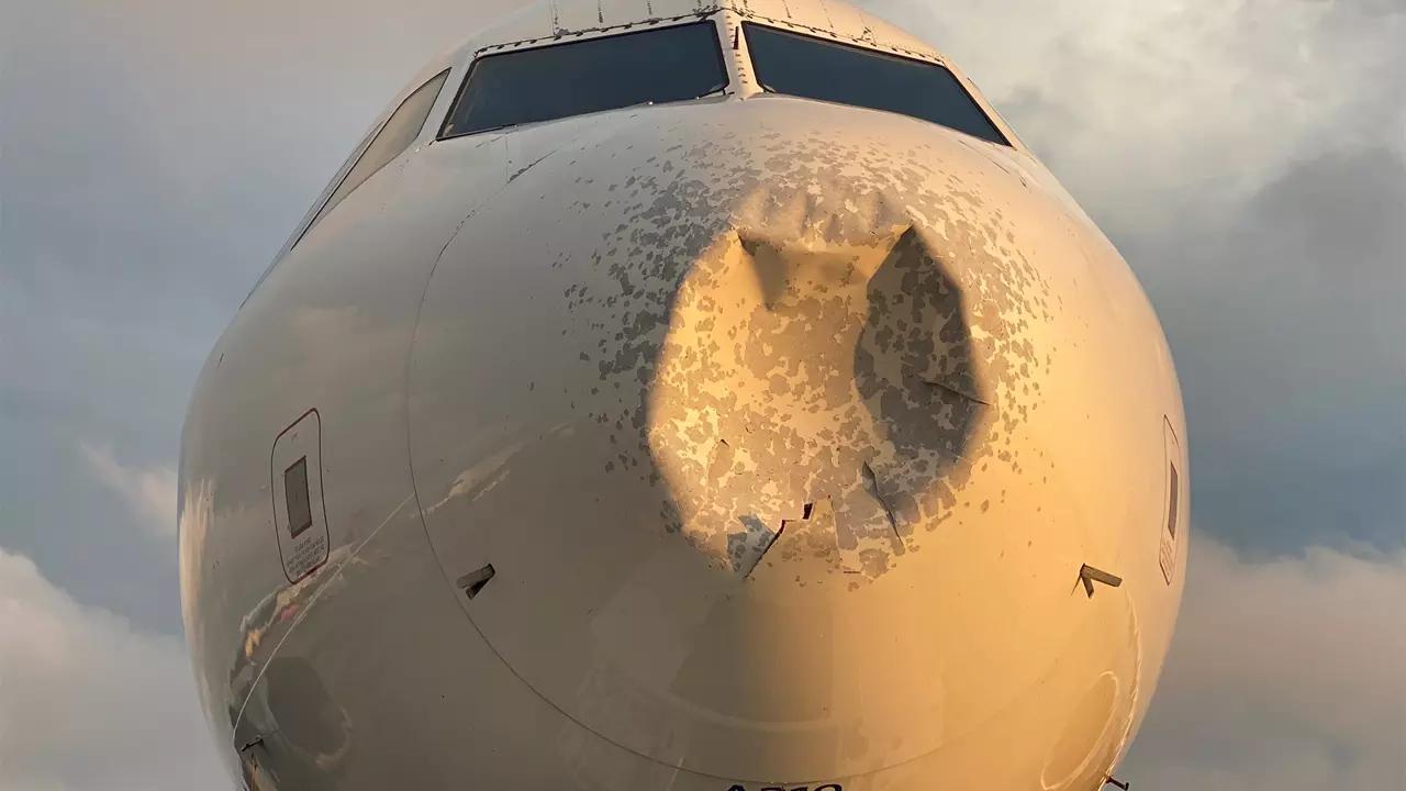 Jen pro představu, jak mohou kroupy poškodit letadlo.