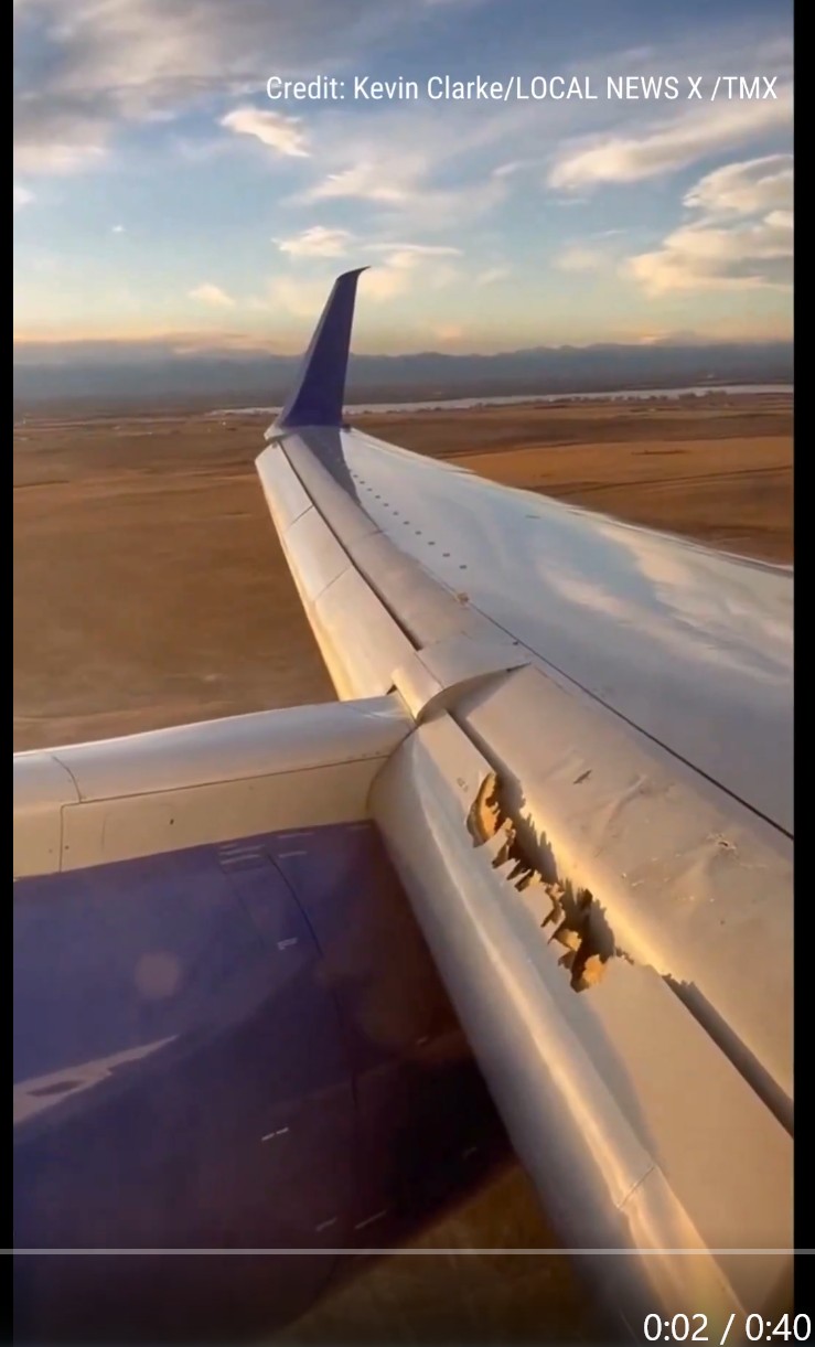 USA – Cestující se podíval z okna letadla a uviděl, jak se rozpadá křídlo Boeingu 757-200 na letu United Airlines ze San Francisca do Bostonu.Let společnosti United Airlines byl nucen nouzově přistát poté, co se křídlo letadla ve vzduchu rozpadlo.