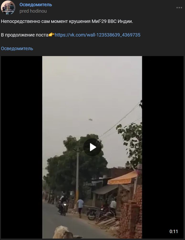 Bezprostredný moment dopadu trupu lietadla rodiny MiG-29 (МиГ-29) VVS Indie po katapultáži pilota Video https://vk.com/video-123538639_456312530 dĺžka 11 sek.