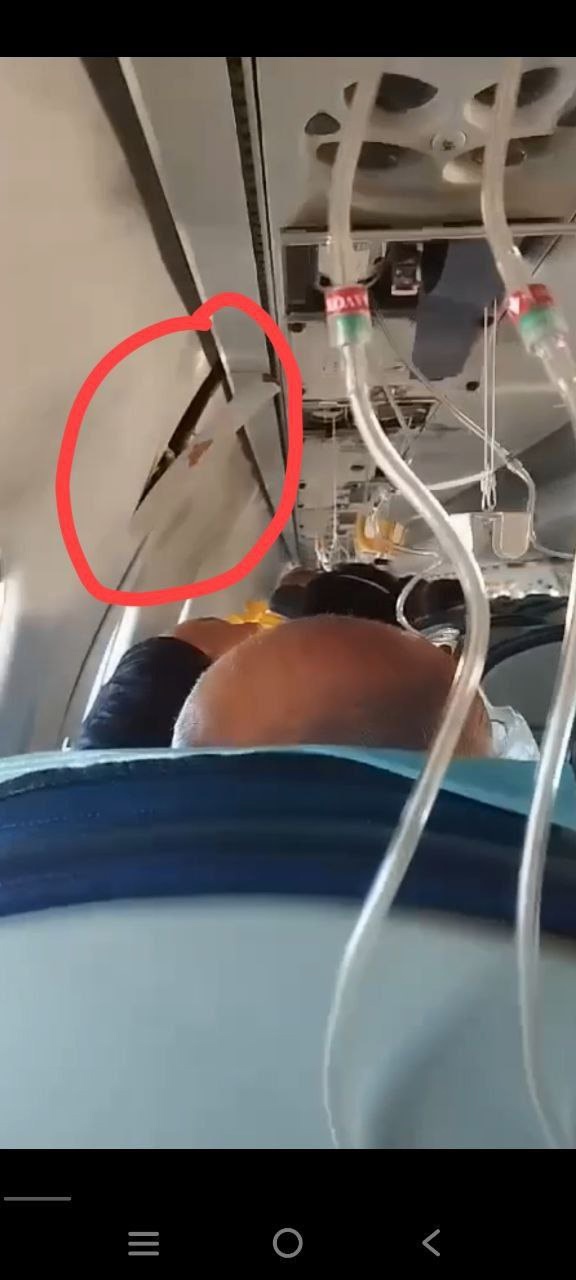 Na záběrech je vidět díra v křídle. V kabině vypadly kyslíkové masky.