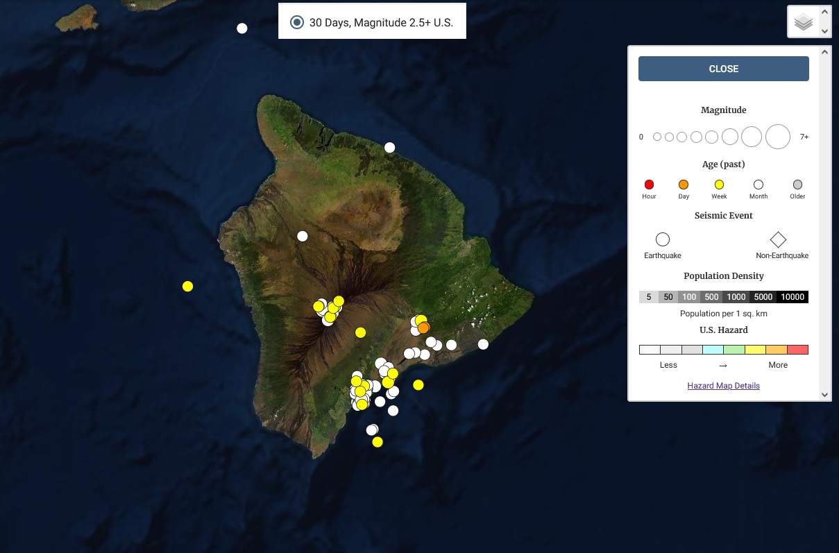 Podle údajů USGS otřásly ostrovem za posledních 30 dní stovky zemětřesení.