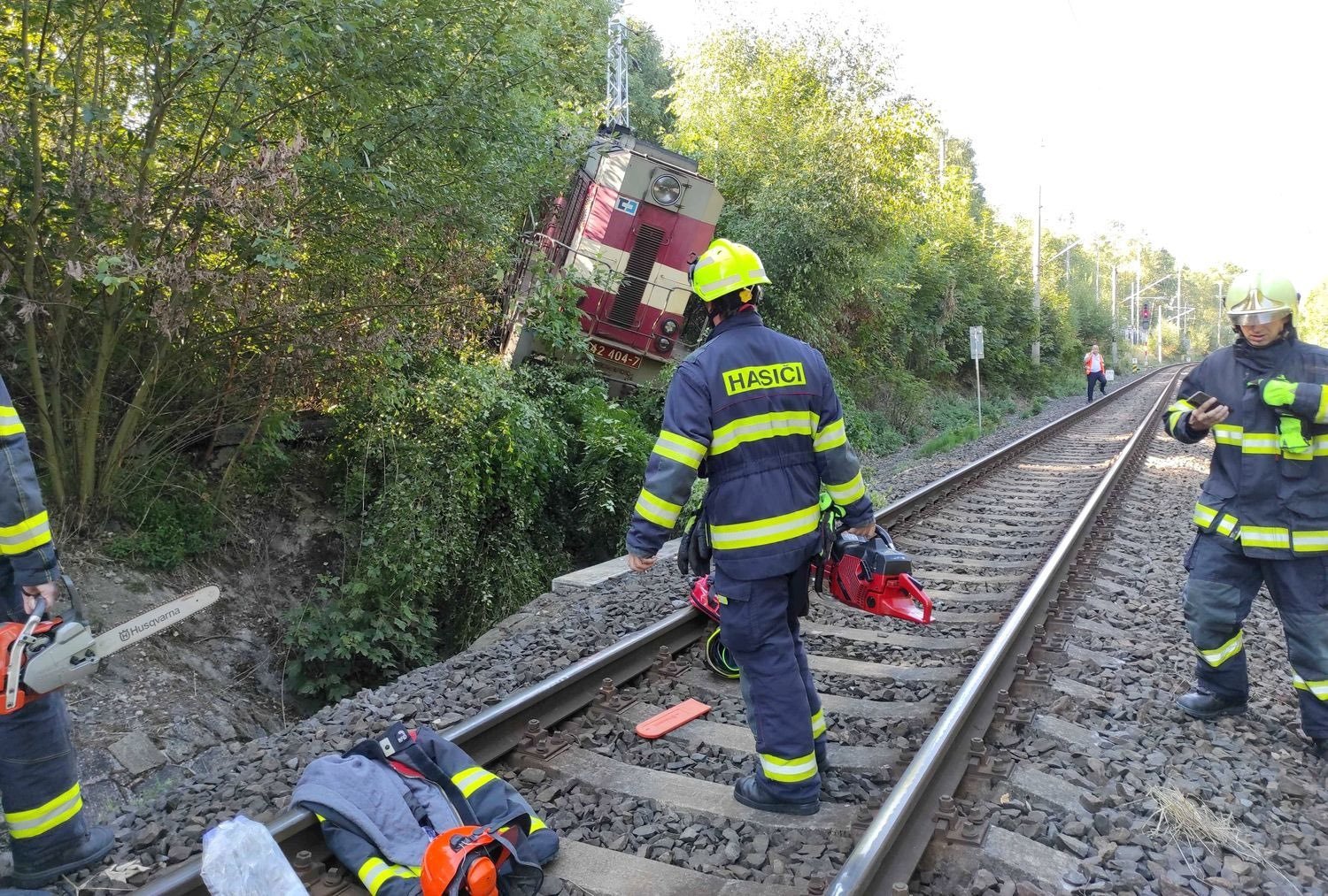 Hořící lokomotiva bez strojvedoucího vykolejila u hranic s Rakouskem