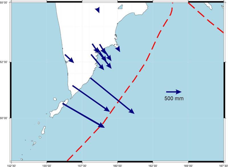 Filipinska oceánska platňa sa zasúva pod Amurskú platňu rýchlosťou 48mm za rok. Lenže... Pacifická oceánska platňa sa zasúva po Ochotskú platňu na rôznych miestach rýchlosťou 90-110 mm za rok :!: Je to zrejme najvyššia zistená rýchlosť veľkoškálových pohybov zemskej kôry.