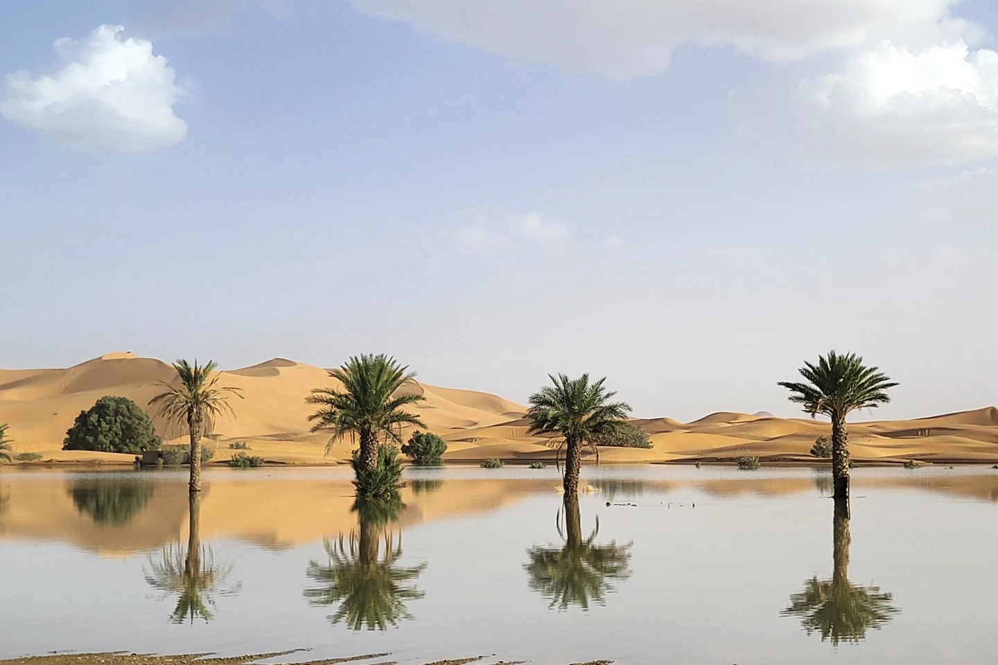 Juhovýchodná časť Marockej púšte patrí medzi najvyprahlejšie miesta na svete a koncom leta v nej zriedkavo prší.