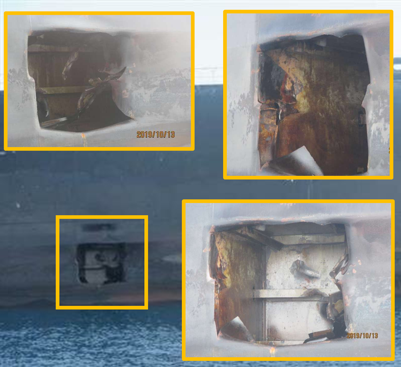 Odborník na výbušniny Sean Kido z 5. flotily amerického námořnictva ve středu ukázal střepiny jedné miny a magnet, který byl sejmut z jednoho z napadených tankerů. Kromě japonské lodi se stal obětí útoku minulý čtvrtek i tanker patřící Norsku. Oba byly poškozeny, ale ne potopeny, posádky se podařilo evakuovat.