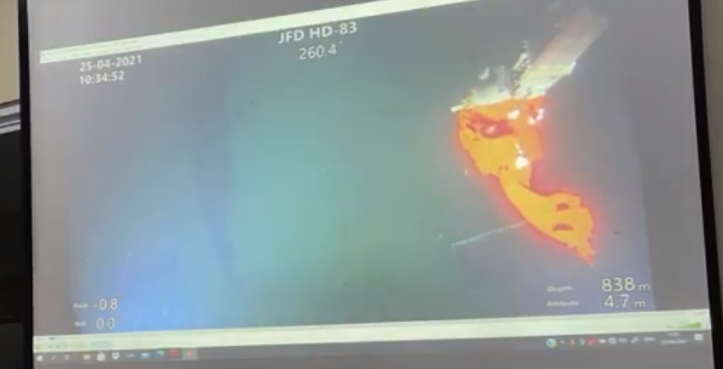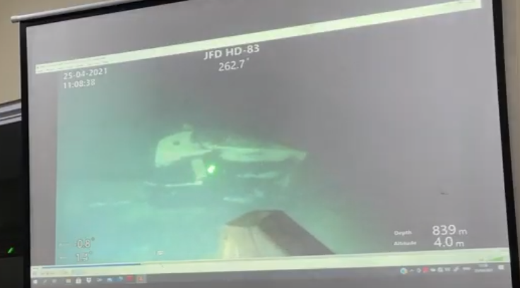 Trup Indonéské ponorky Nanggaly byl nalezen rozdrcený / poškozený v 09:04 UTC +9 v hloubce 838 metrů.