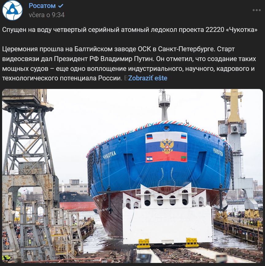 ↑ 4. sériový (5. v poradí) A-ľadoborec projektu 22220 "Čukotka" (Чукотка) bol v stredu 06.11.2024 spustený na vodu