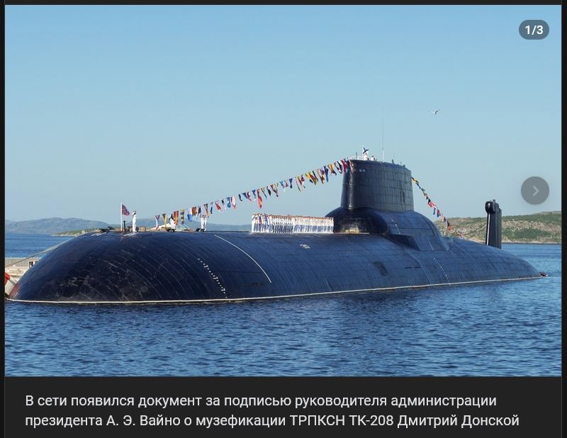 Na internete sa objavil dokument podpísaný vedúcim prezidentskej administratívy A. E. Vajno (А. Э. Вайно) o muzealizácii A-ponorky TK-208 Dmitrij Donskoj (ТК-208 Дмитрий Донской) projektu 941 Akula