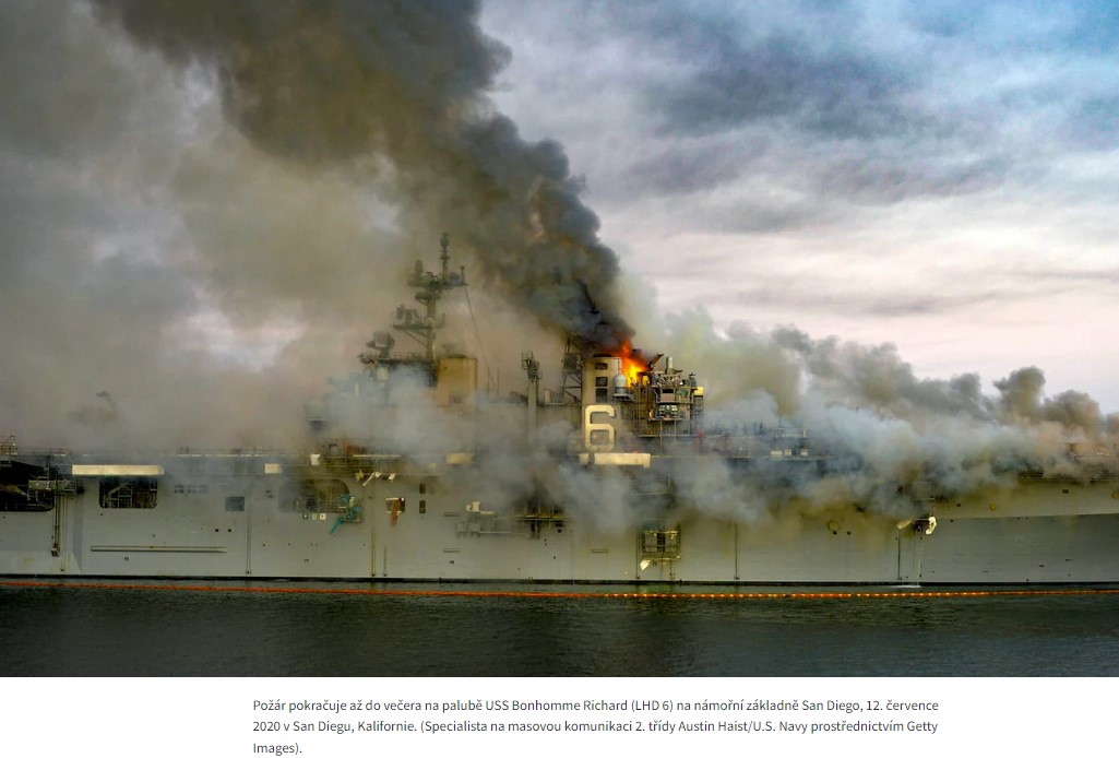 Vo štvrtok 29.07.2021 predstaviteľ 3. flotily NAVY "Cmdr. Sean Robertson" oznámil, že člen posádky lode USS Bonhomme Richard (LHA-6) bol obvinený z úmyselného podpálenia lode. Meno námorníka nebolo zverejnené, ale je známe, že v čase spáchania trestného činu mal 19 rokov a v 11/2020 bol v súvislosti s týmto prípadom nakrátko zatknutý (momentálne od 11/2020 na slobode). Právnik Gary Barthel povedal, že námorník vinu nepriznal (odmieta). Požiar na palube LHA-6 vypukol 12.07.2020 približne o 08:30 hod., trval 4 dni a úplne ho zničil.