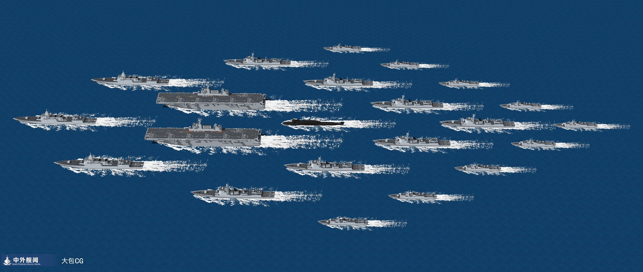 Všechny lodě pohromadě Kromě toho se vrátil do služby jeden torpédoborec Projektu 956, který postoupil hlubokou modenizaci a prakticky se vyrovná moderním lodím. Naopak z inventáře námořnictva začaly být vyřazovány první korvety třídy Type 056. I když se jedná o poměrně nové lodě (nejstarší loď byla spuštěna na vodu v roce 2012), tak již nesplňují současné požadavky námořnictva. Jejich služba ale nekončí, vyřazené lodě přijdou o většinu výzbroje a převezme si je pobřežní stráž. Celkem má být vyřazeno 20 lodí, za něž přijde náhrada v podobě nové série fregat Type 054A. Jejich výroba již probíhá a letos bylo na vodu spuštěno prvních 5 jednotek.