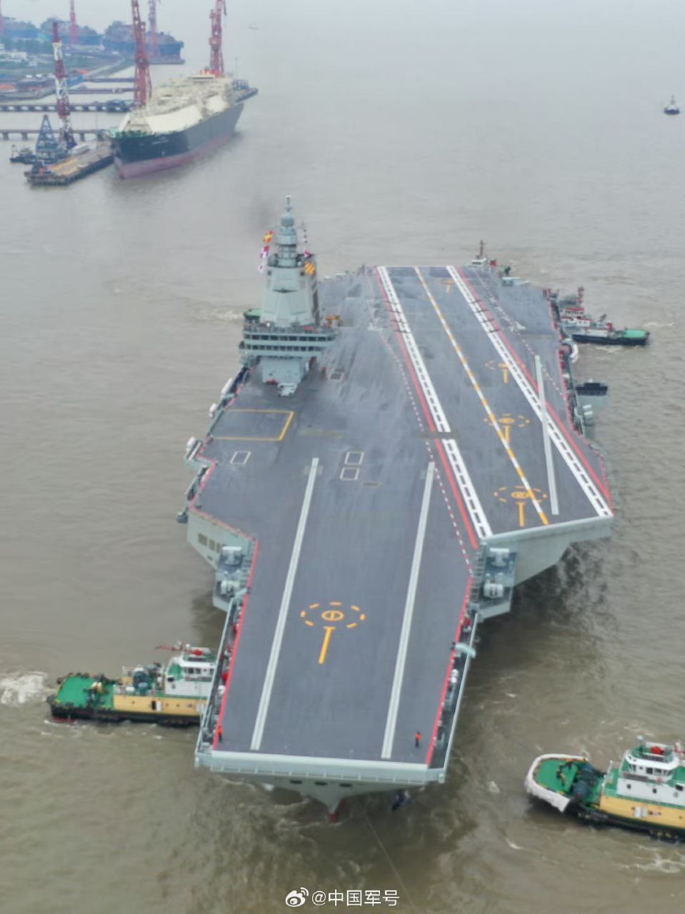 První čínská letadlová loď domácí výroby, válečná loď Šan-tung, je na seznamu již méně než tři roky a dokončila meziregionální mobilitu, taktiku formace a další výcvikové úkoly; V současné době třetí čínská letadlová loď, válečná loď Fujian, provádí testy kotvení podle plánu.