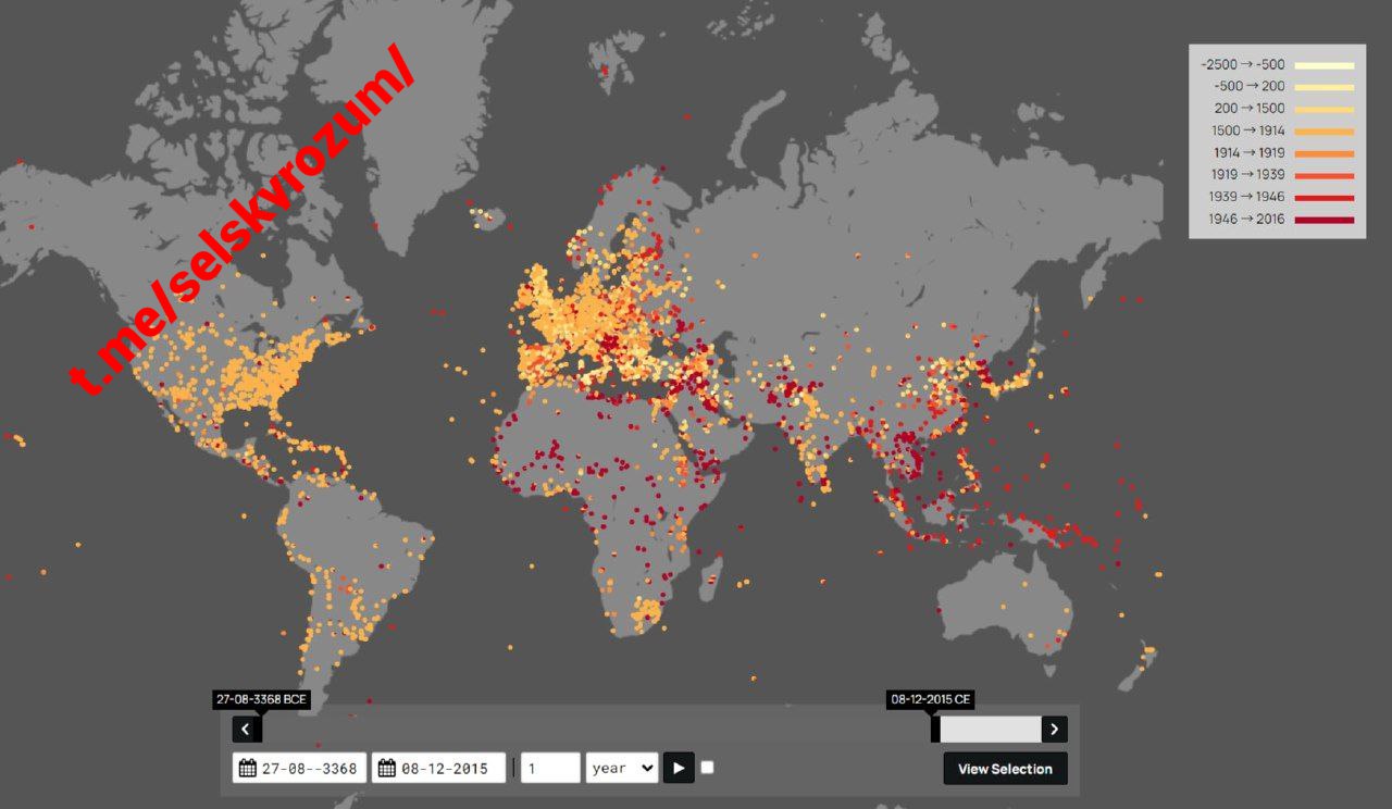 Zdroj https://t.me/selskyrozum/101812 z 30.09.2024Holandsko vytvořilo interaktivní mapu všech válek v historii za posledních 2500 let - prozkoumali 12703 válek, z nichž 8000 je zdokumentováno. Poté je přenesli na mapu a.... Kdo je nejkrvežíznivější?