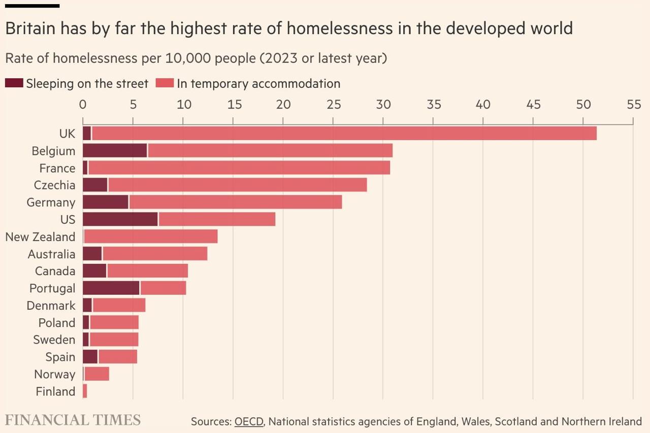 Ve Spojeném království je nejvyšší míra bezdomovectví ve vyspělém světě.