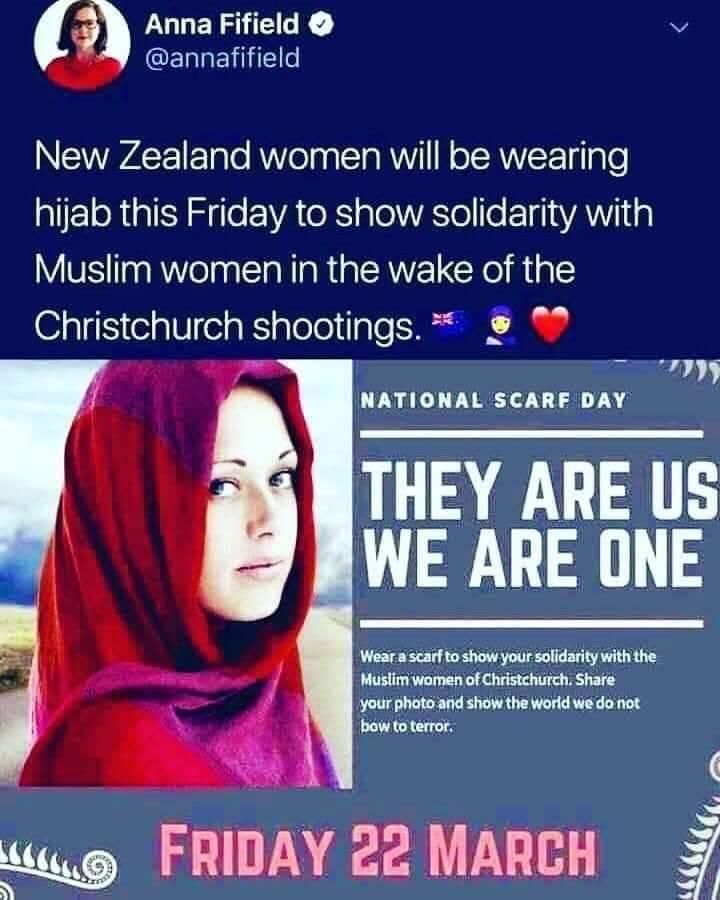Novozelandske zeny si na znameni solidarity s muslimskymi zenami obleknou hijab v patek 22.03.2019.
