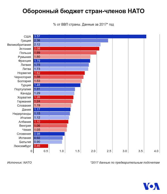 Členské štáty NATO zoradené podľa % z HDP na vojenský rozpočet daného štátu