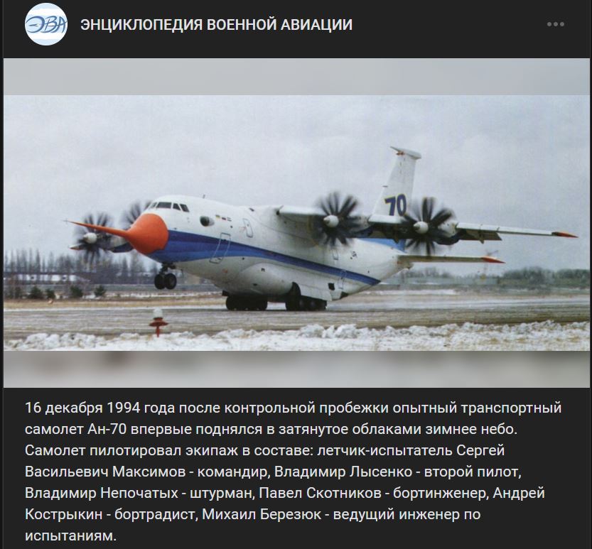 Pred 30-timi rokmi, 16.12.1994 prvý vzlet dopravného lietadla Antonov An-70 Zdroj https://vk.com/wall-173678697_397738 z 16.12.2024