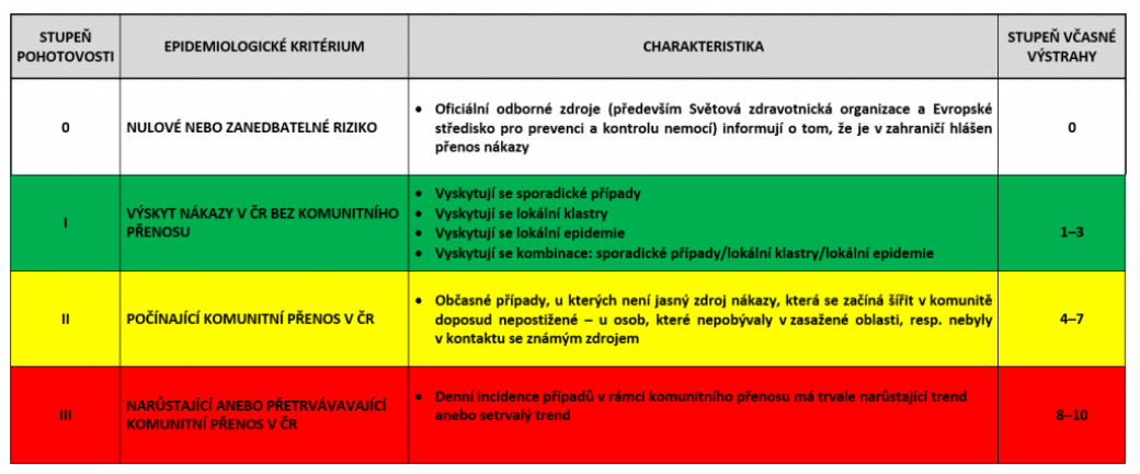 Mapa Česka podle epidemiologického rizika v jednotlivých okresech bude rozdělena na čtyři stupně rizika označené bílou, zelenou, žlutou a červenou barvou. Podle aktuálních dat by nejvyšší stupeň nikde v zemi neplatil, žlutý by byl pouze v Praze a zelený v některých okresech Moravskoslezského a Středočeského kraje a na Jihlavsku. V pondělí to uvedl vedoucí epidemiologické pracovní skupiny při ministerstvu zdravotnictví Rastislav Maďar.